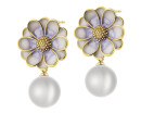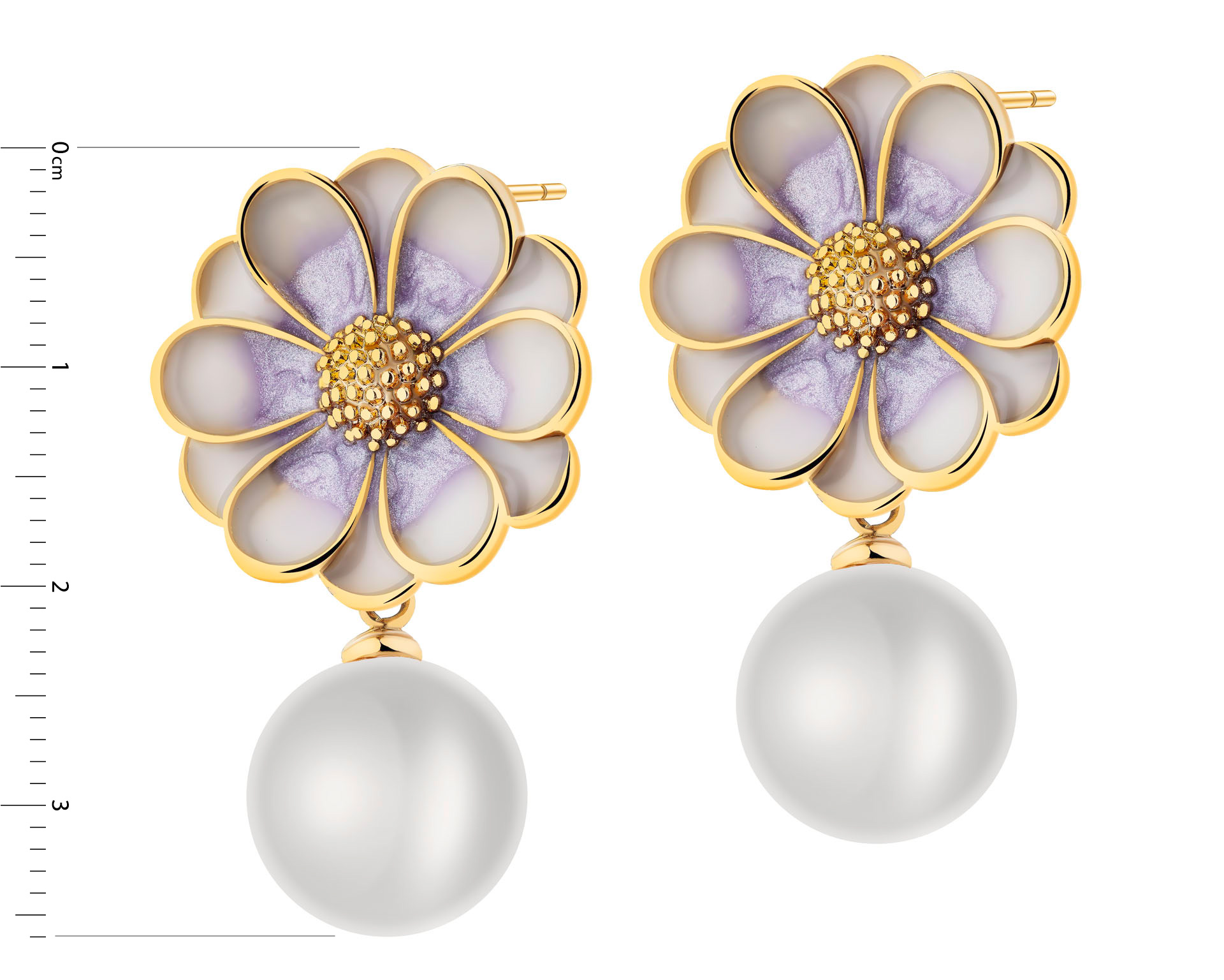Kolczyki z mosiądzu pozłacane z detalami z masy żywicznej i perłami - kwiaty