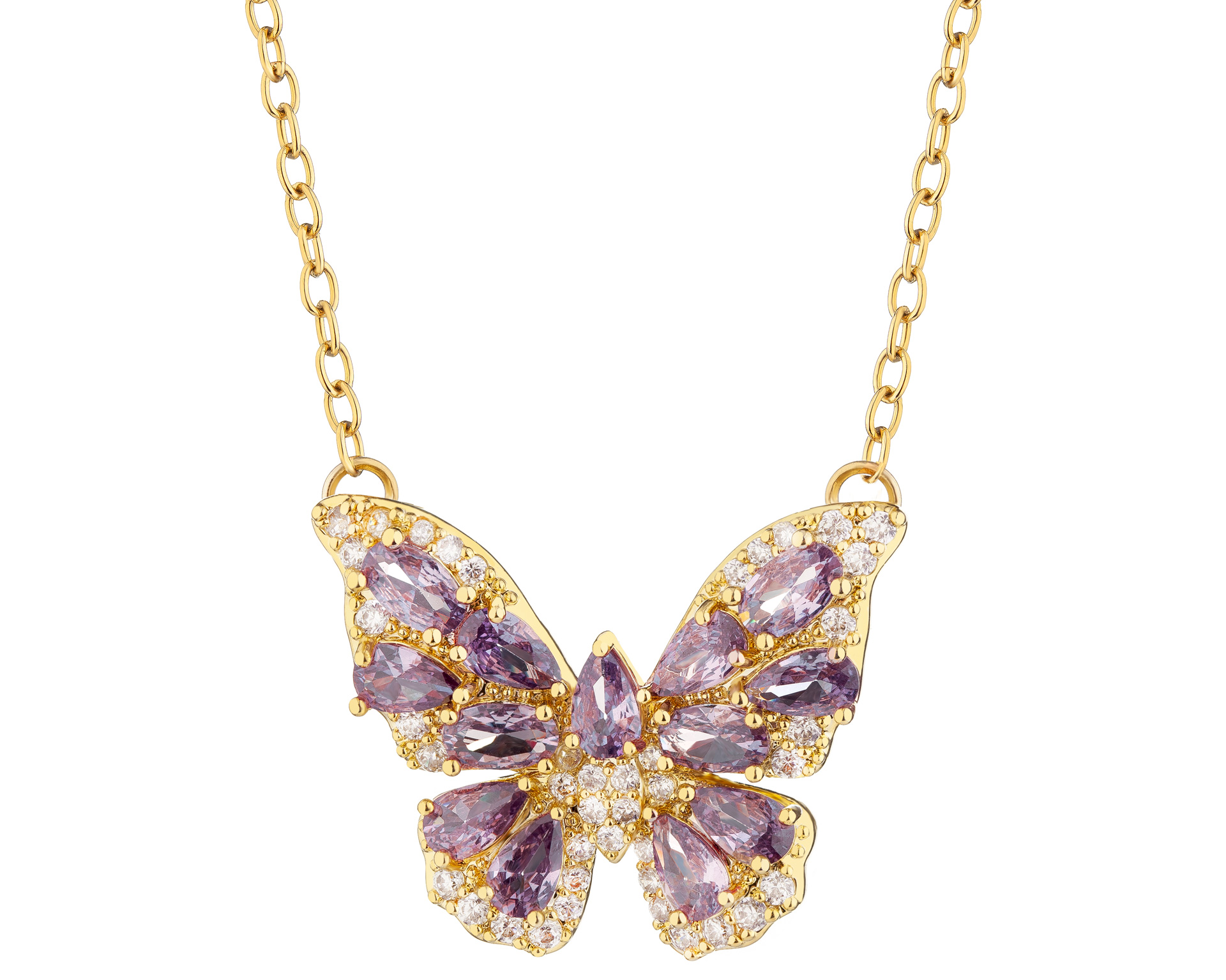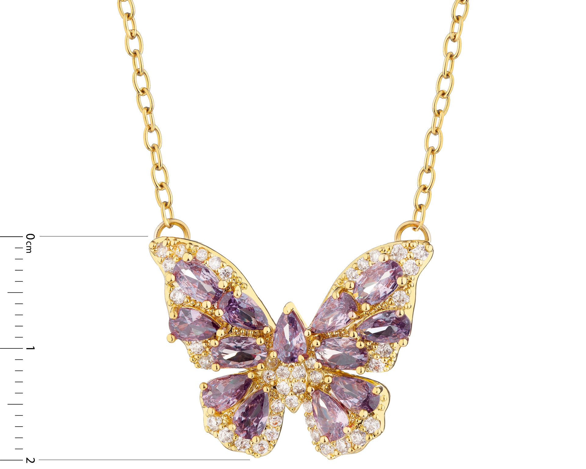 Naszyjnik z mosiądzu pozłacany z cyrkoniami - motyl
