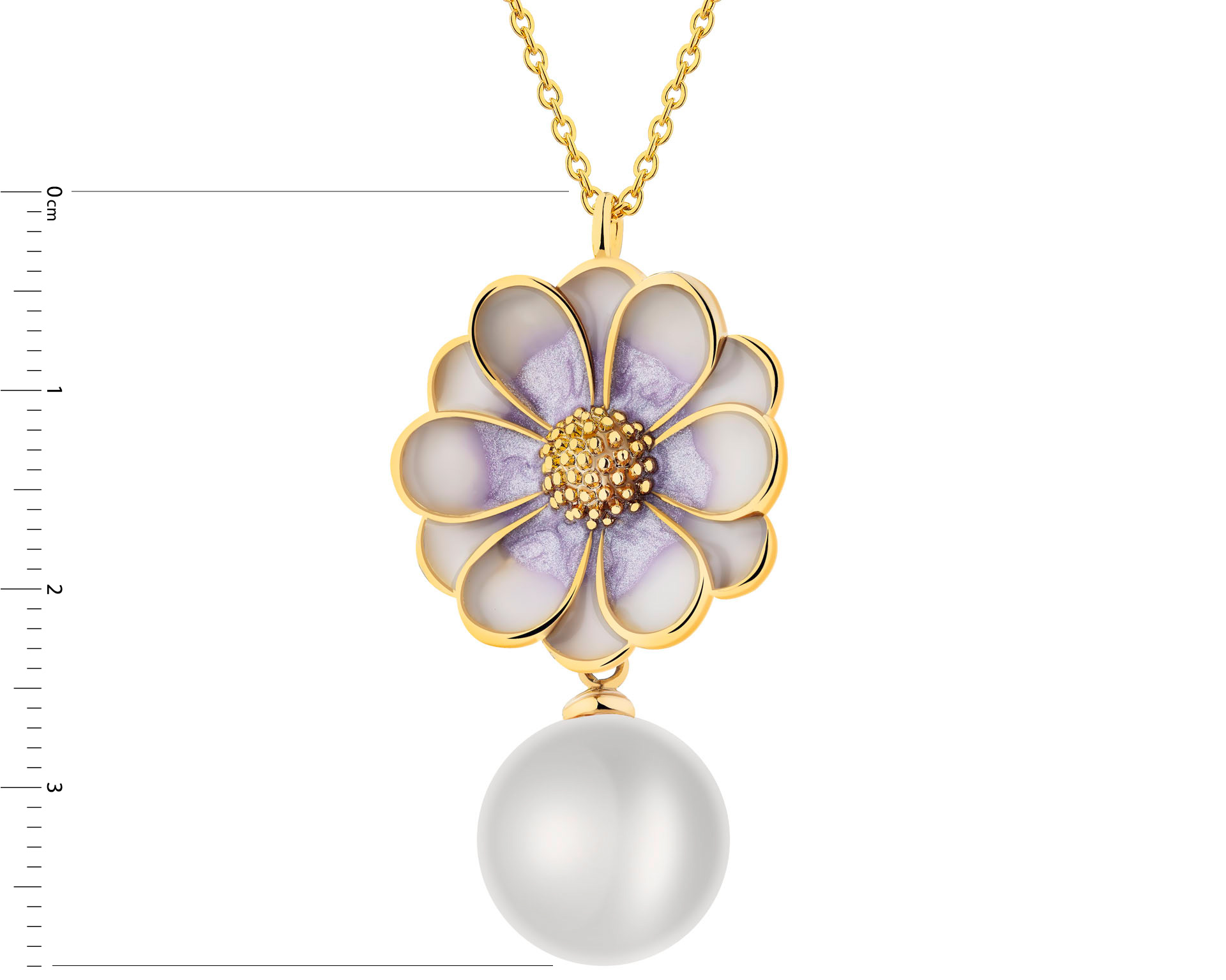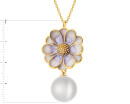 Naszyjnik z mosiądzu pozłacany z detalami z masy żywicznej i perłą - kwiat