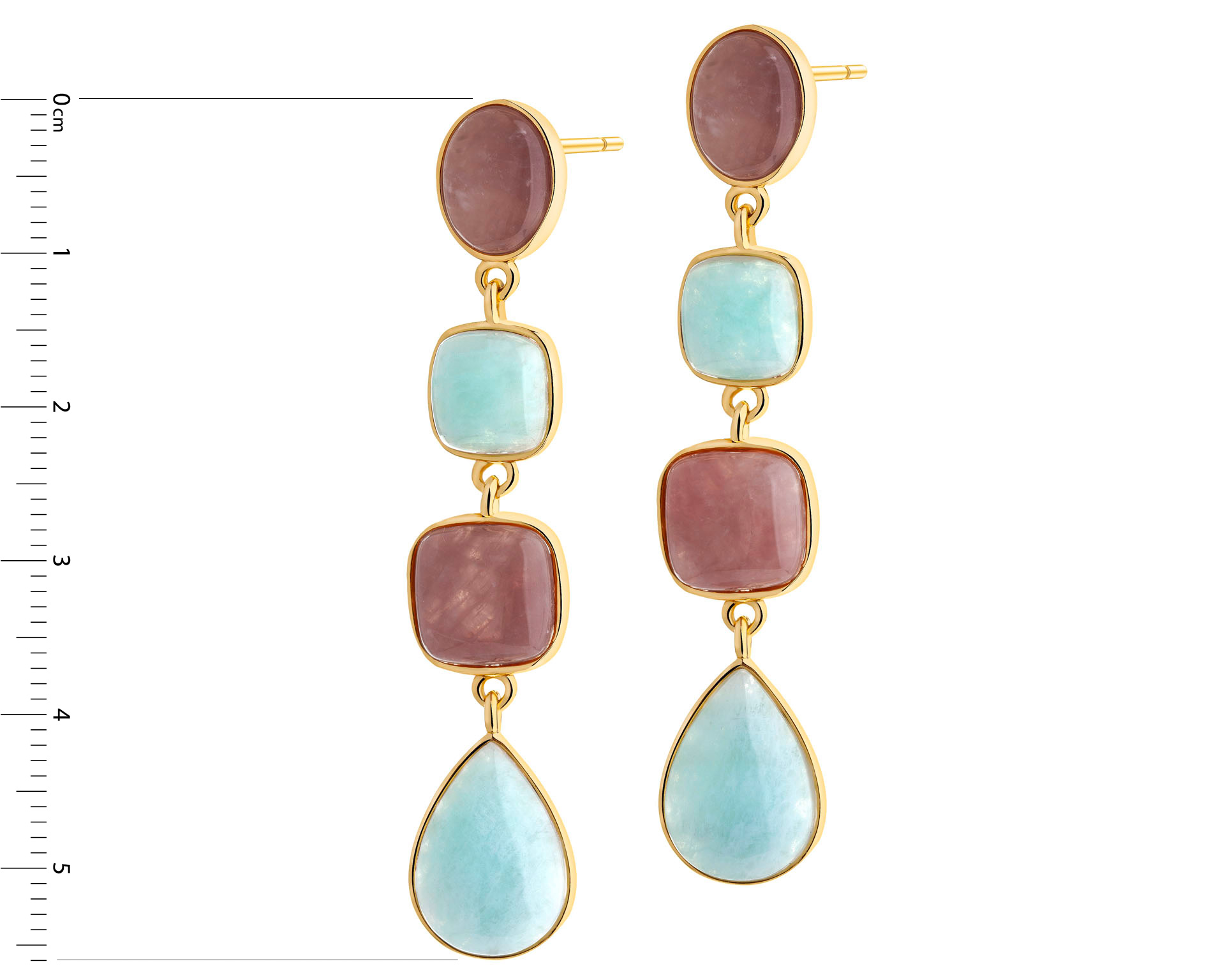 Kolczyki z mosiądzu pozłacane z amazonitami i kwarcami