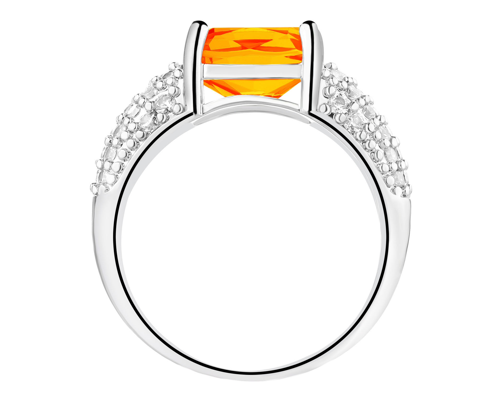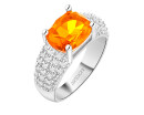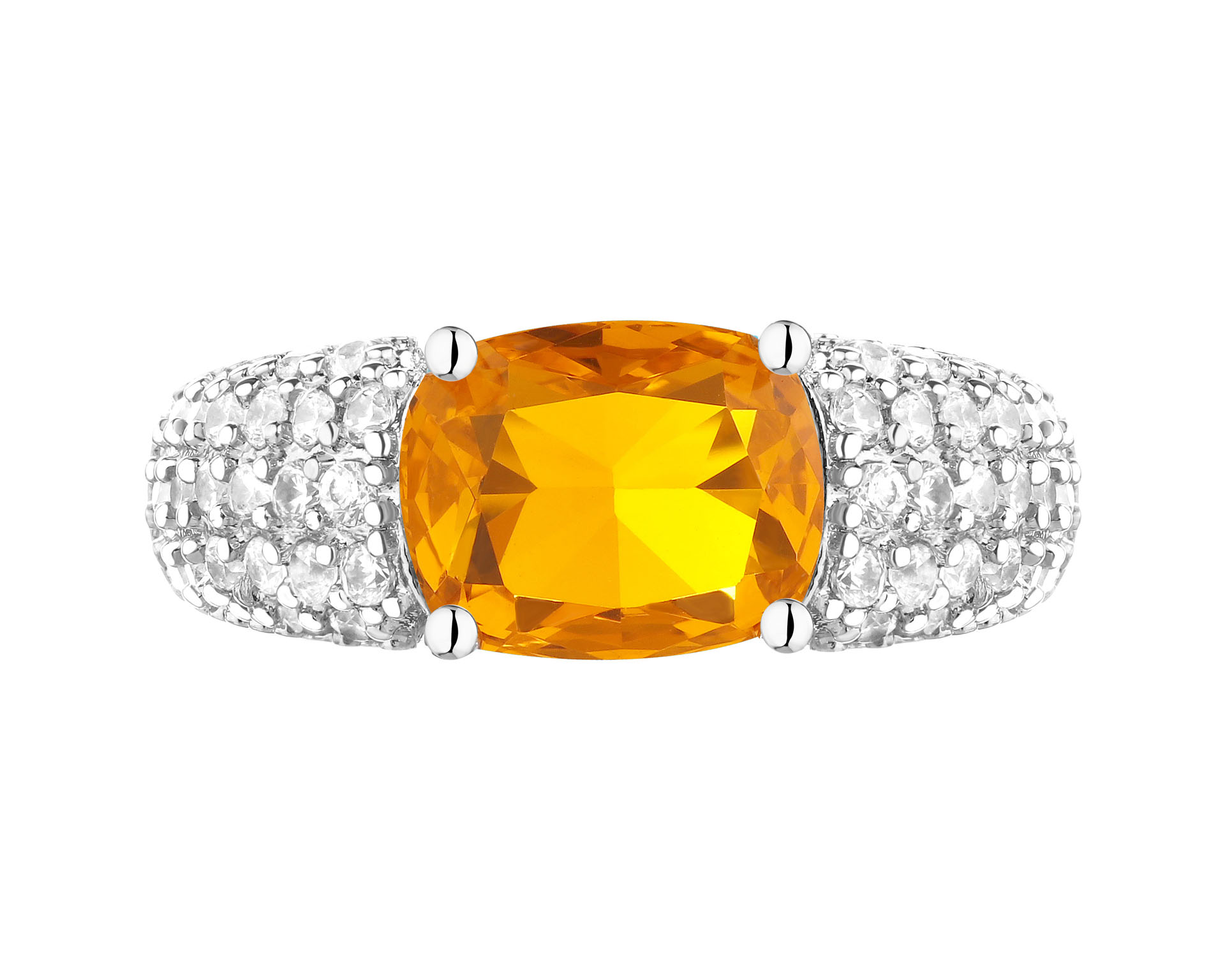 Pierścionek z mosiądzu rodowany z cyrkoniami i szklanym detalem