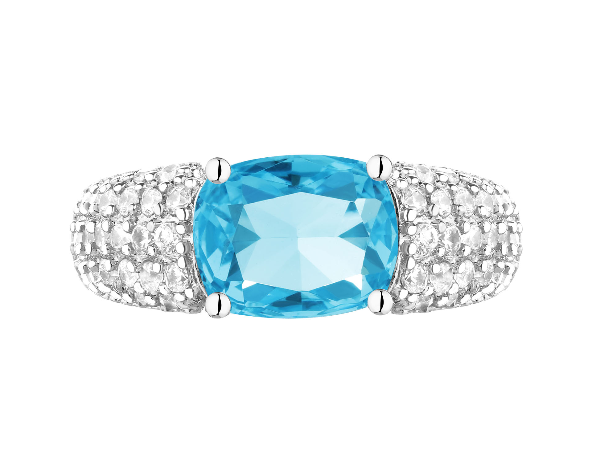 Pierścionek z mosiądzu rodowany z cyrkoniami i szklanym detalem