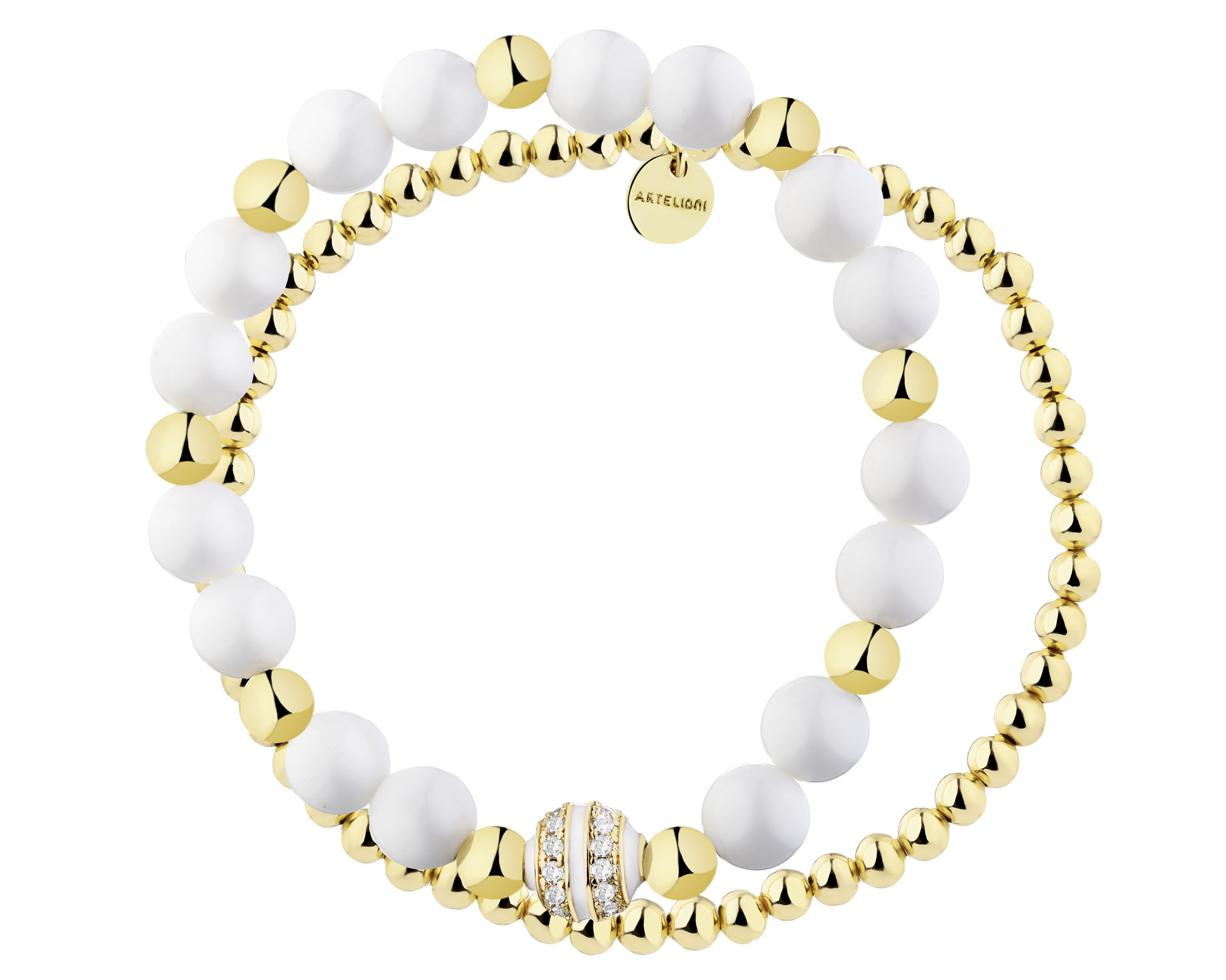 Bransoletka z mosiądzu pozłacana z agatem, howlitem i szklanymi detalami - rozeta
