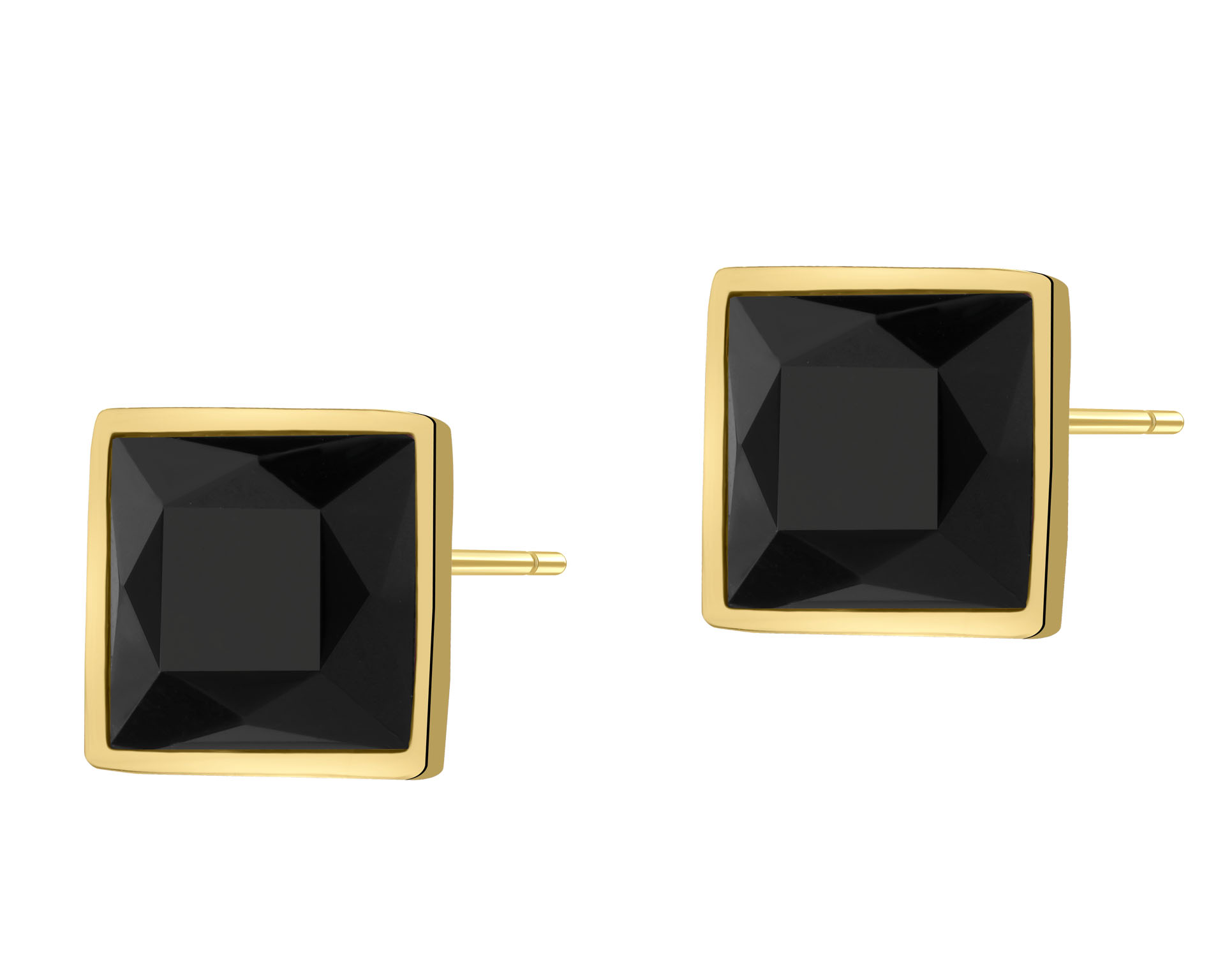 Kolczyki z mosiądzu pozłacane z agatami - kwadraty