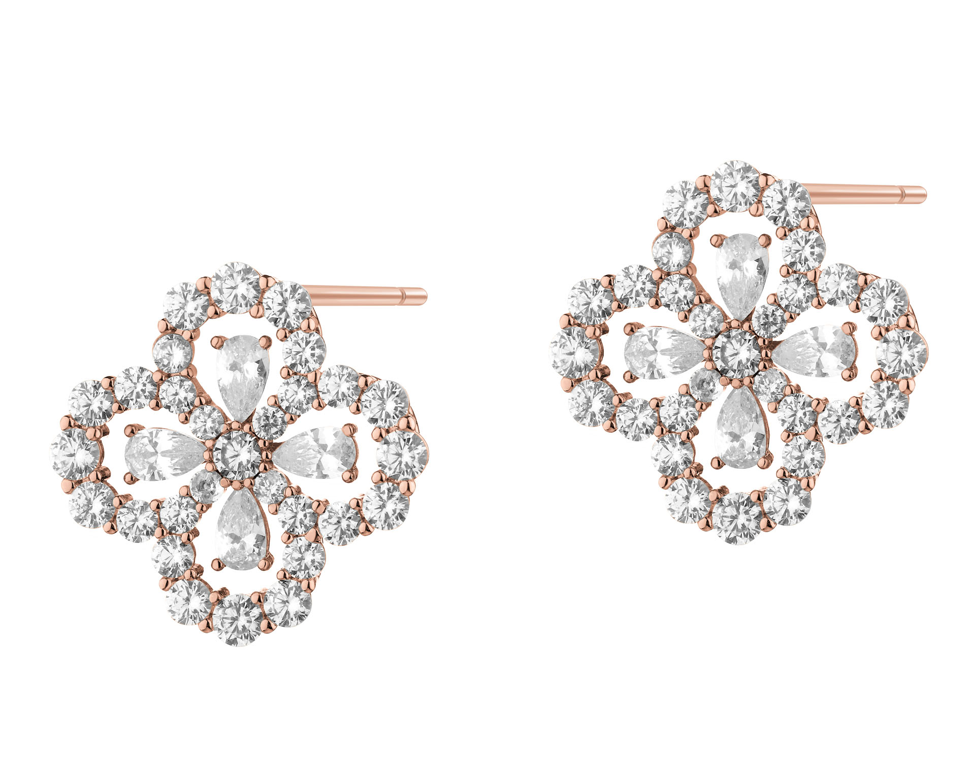 Kolczyki z mosiądzu pozłacane z cyrkoniami - kwiaty