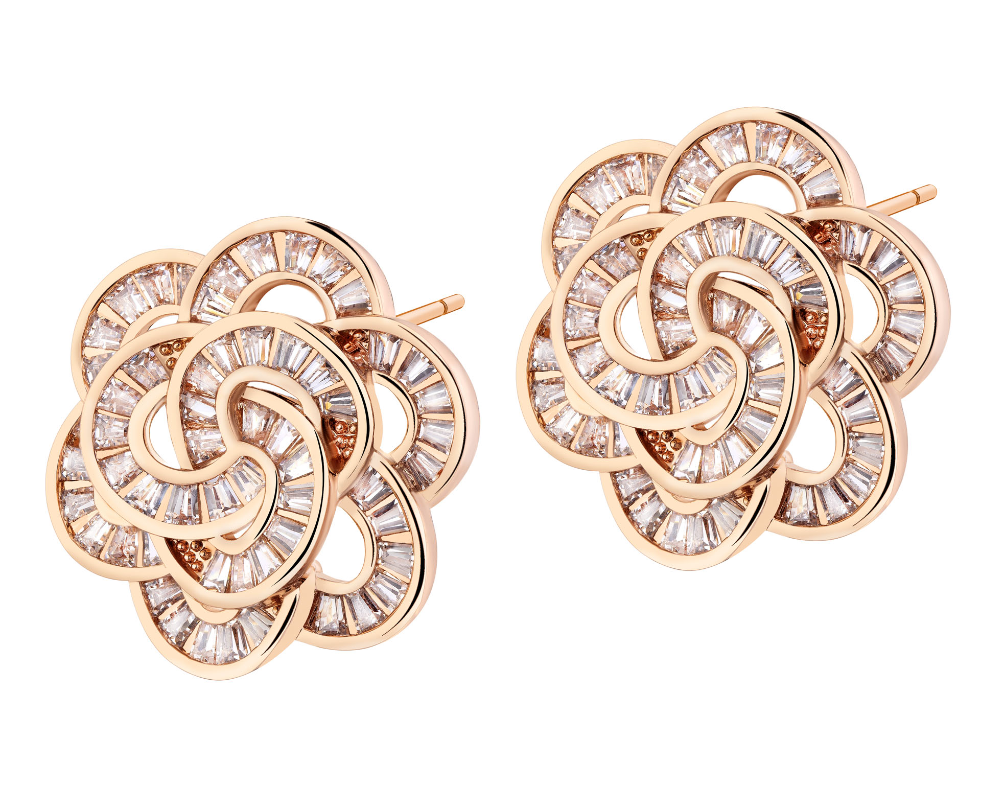 Kolczyki z mosiądzu pozłacane z cyrkoniami - kwiaty