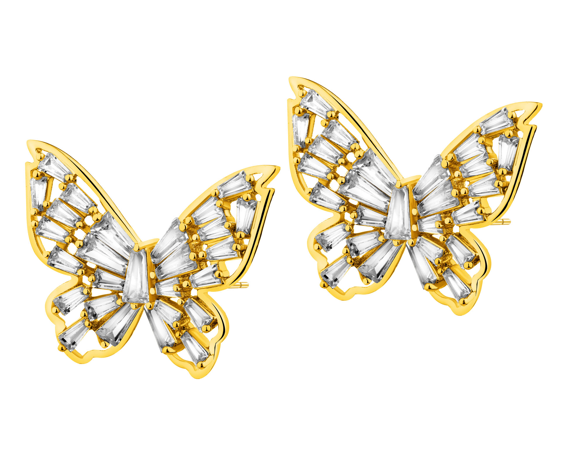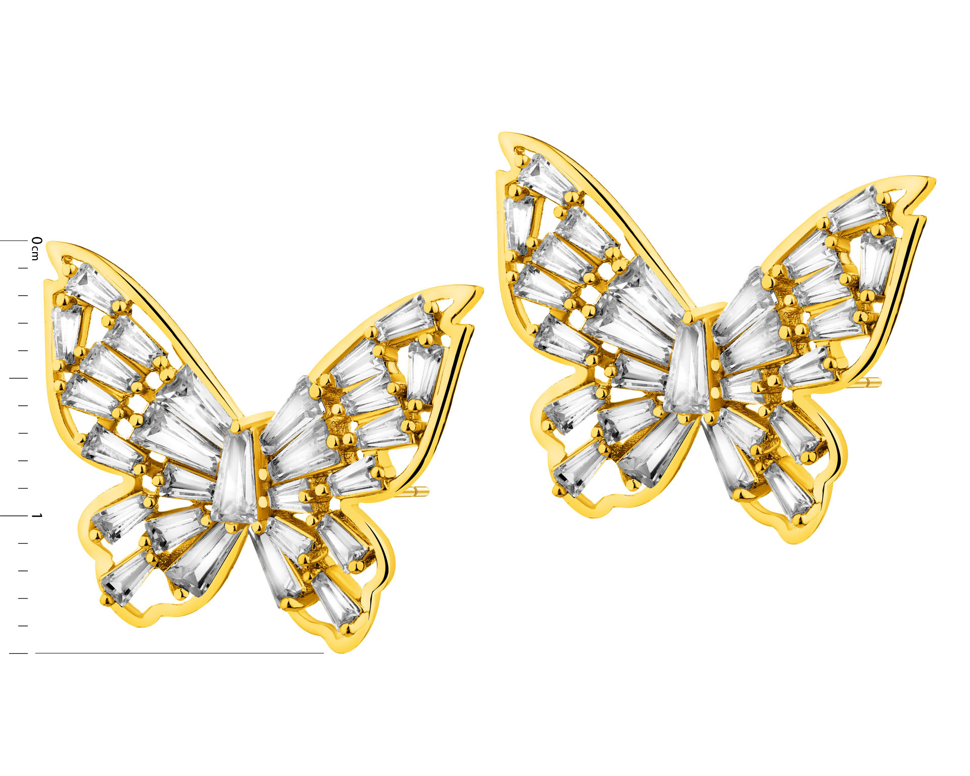 Kolczyki z mosiądzu pozłacane z cyrkoniami - motyl