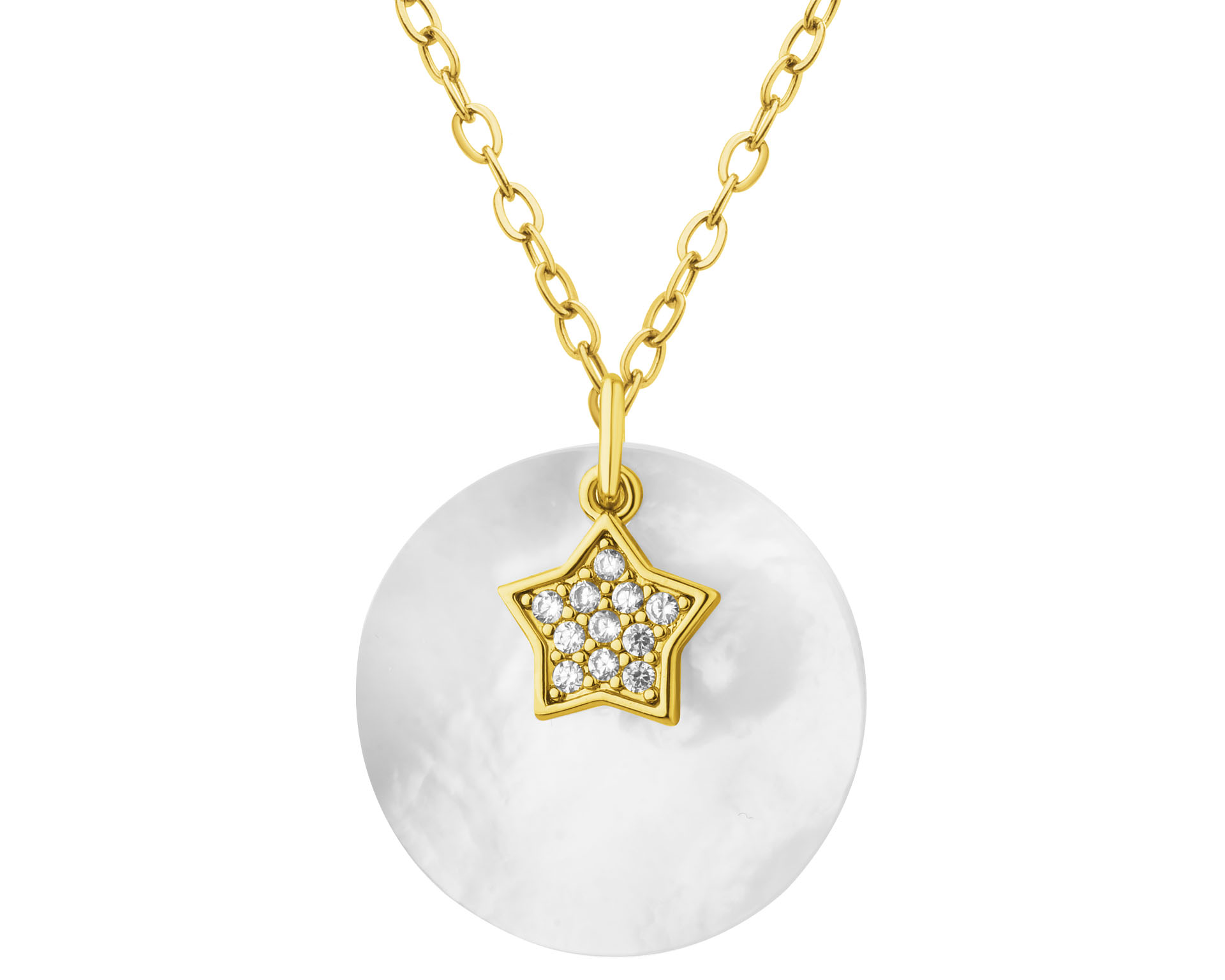 Naszyjnik z mosiądzu pozłacany z cyrkoniami i masą perłową - gwiazda