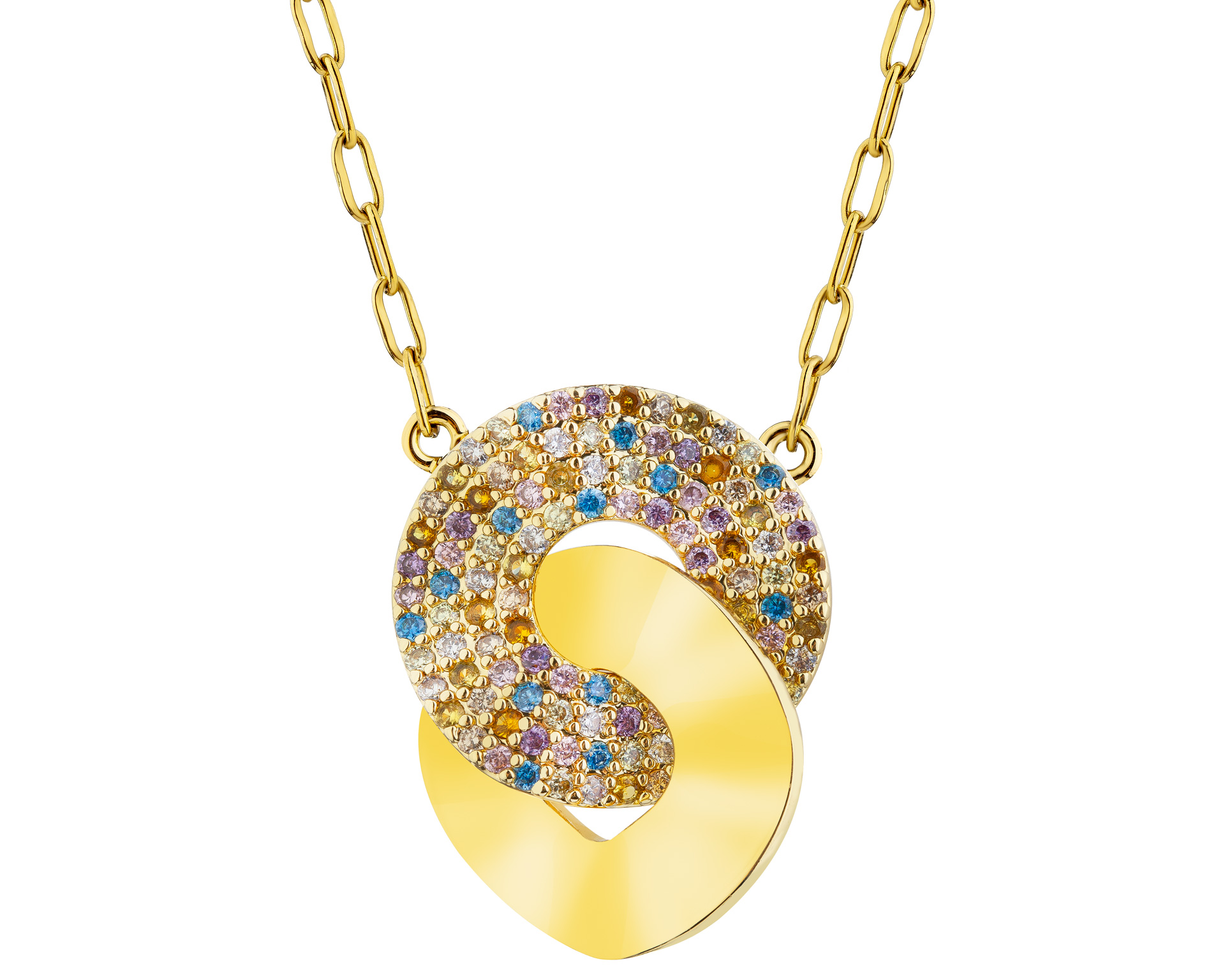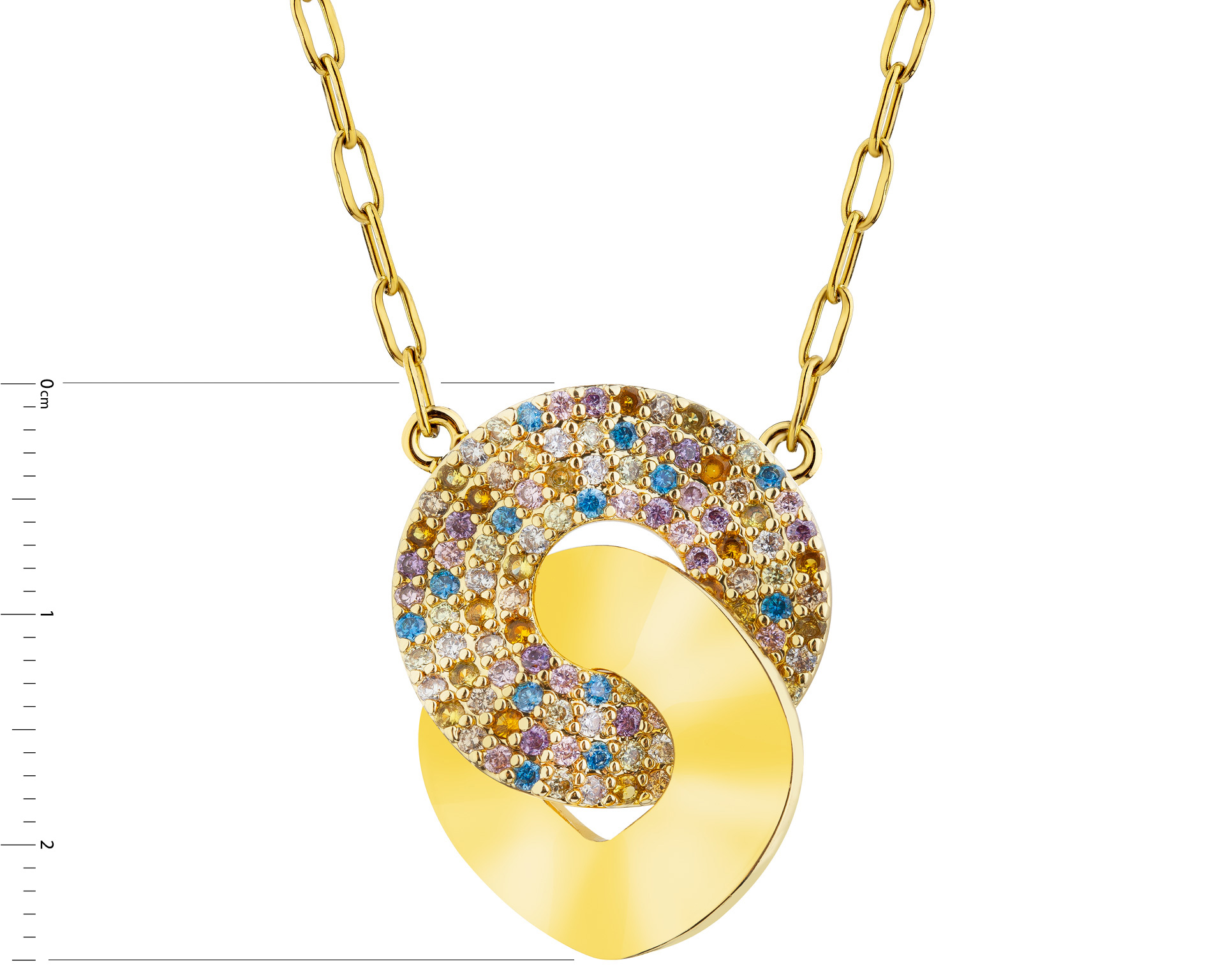 Naszyjnik z mosiądzu pozłacany z cyrkoniami - koła