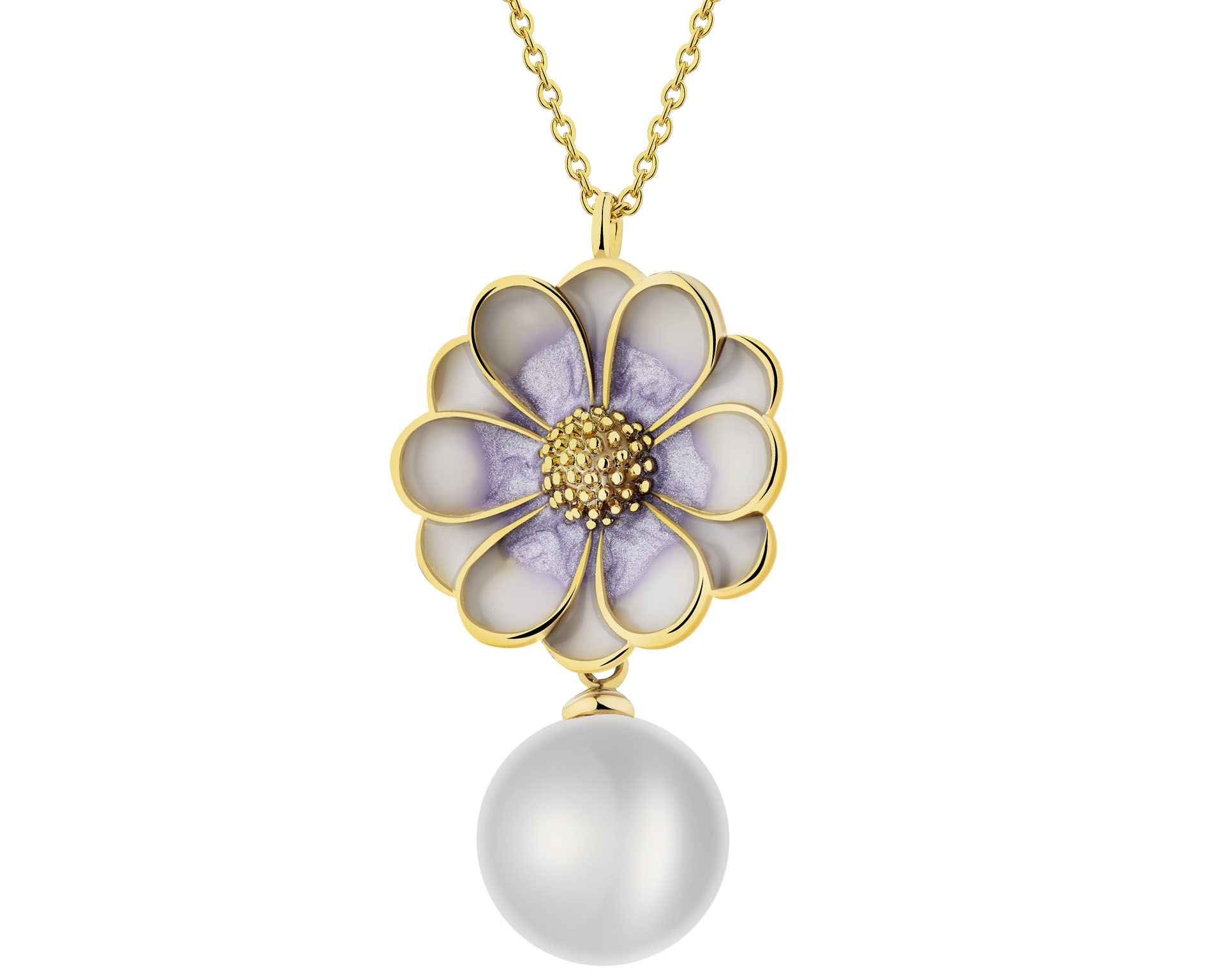 Naszyjnik z mosiądzu pozłacany z detalami z masy żywicznej i perłą - kwiat
