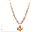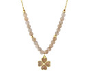 Naszyjnik z mosiądzu pozłacany z kamieniami księżycowymi i cyrkoniami - koniczyna