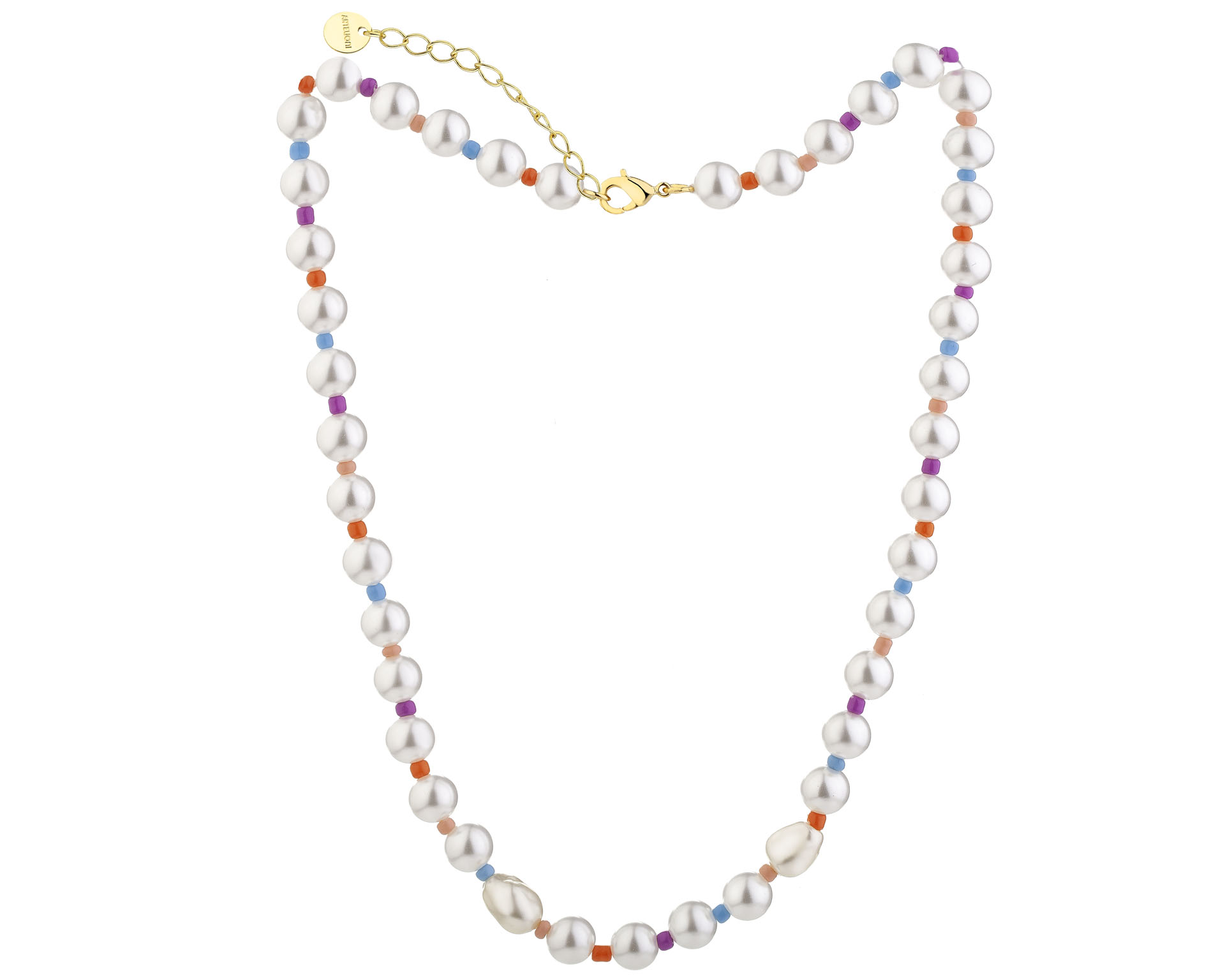 Naszyjnik z mosiądzu pozłacany z perłami i szklanymi detalami