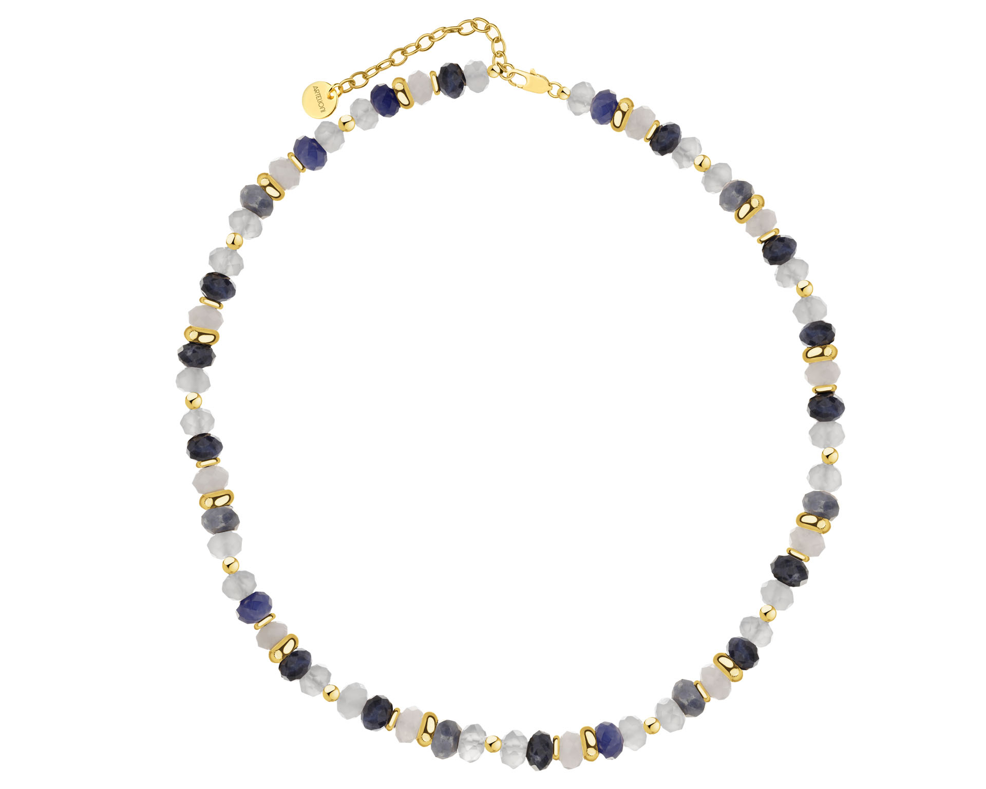 Naszyjnik z mosiądzu pozłacany z sodalitami i kwarcami