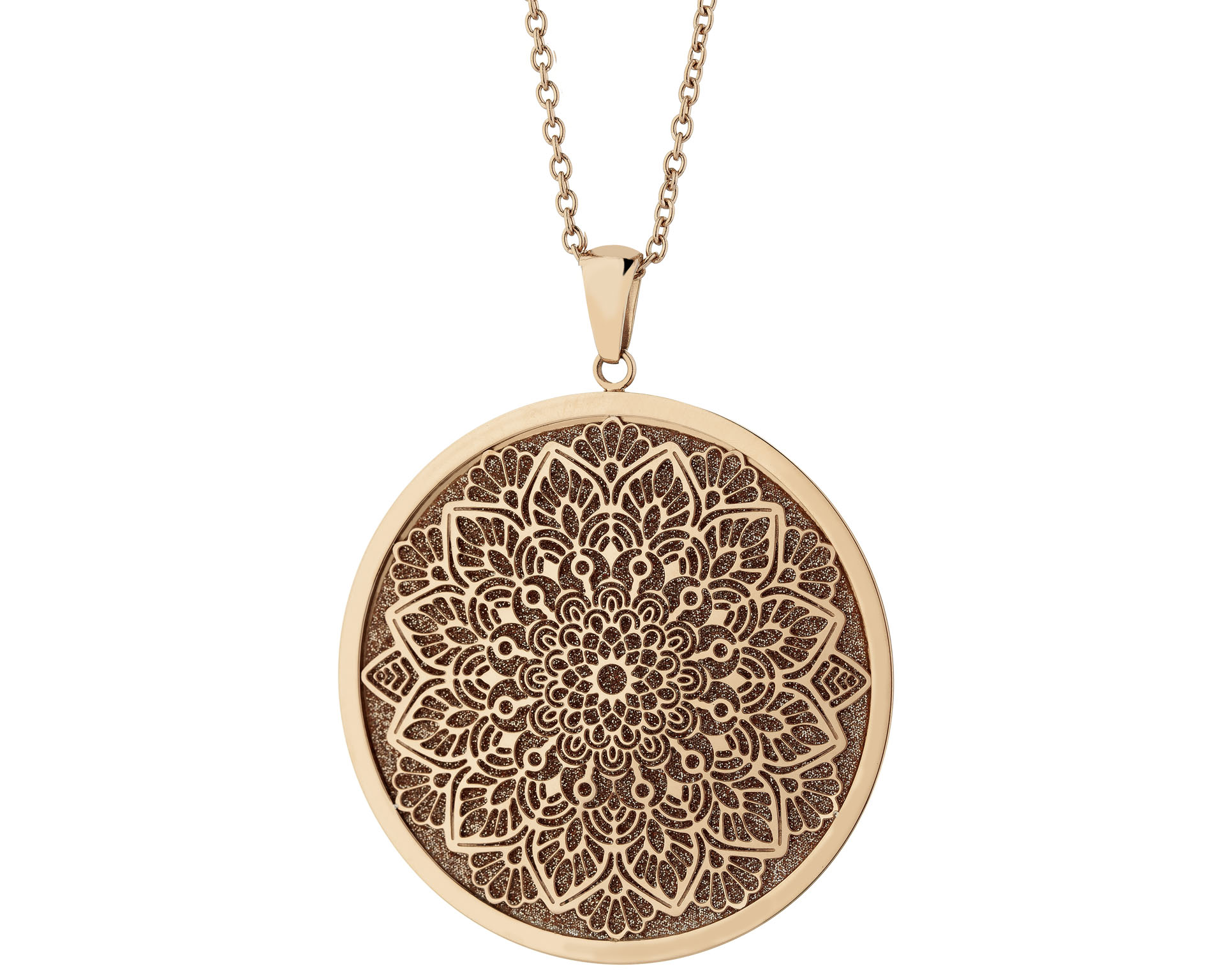 Naszyjnik ze stali szlachetnej z brokatem - rozeta