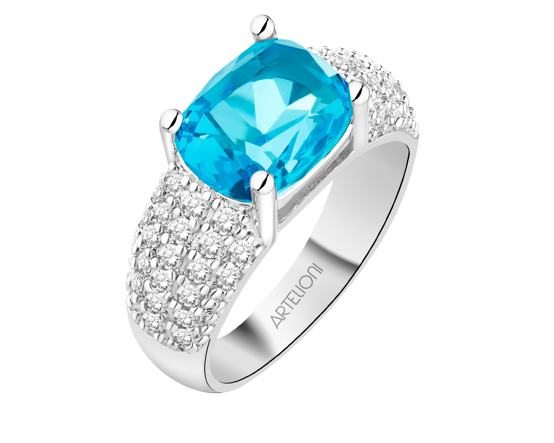 Pierścionek z mosiądzu rodowany z cyrkoniami i szklanym detalem