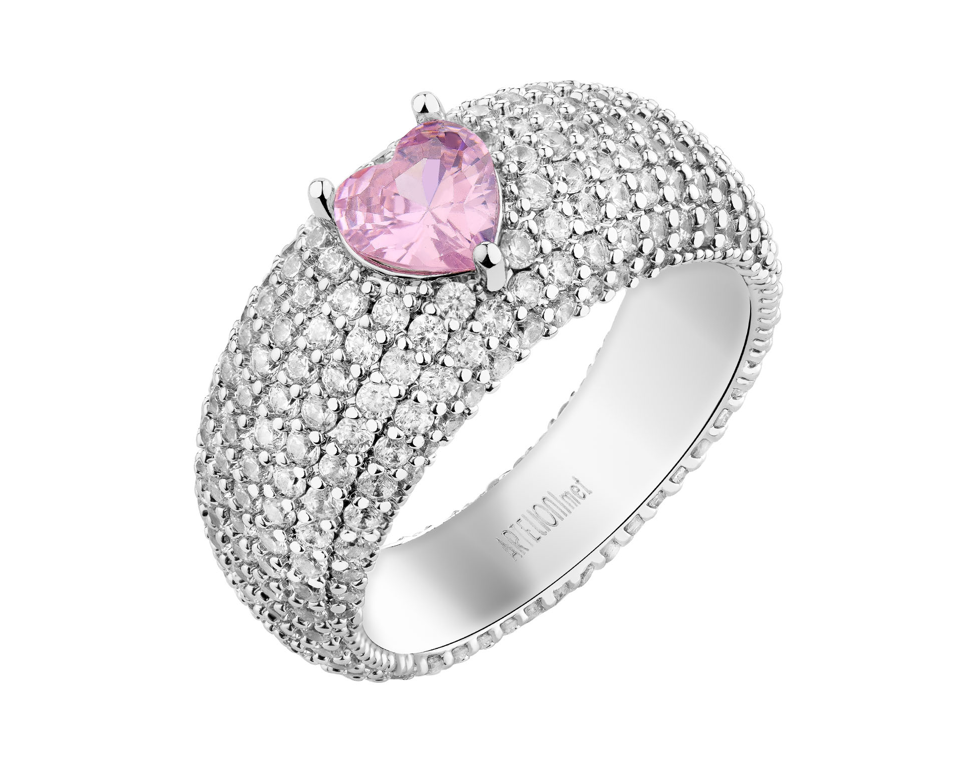 Pierścionek z mosiądzu rodowany z cyrkoniami - serce