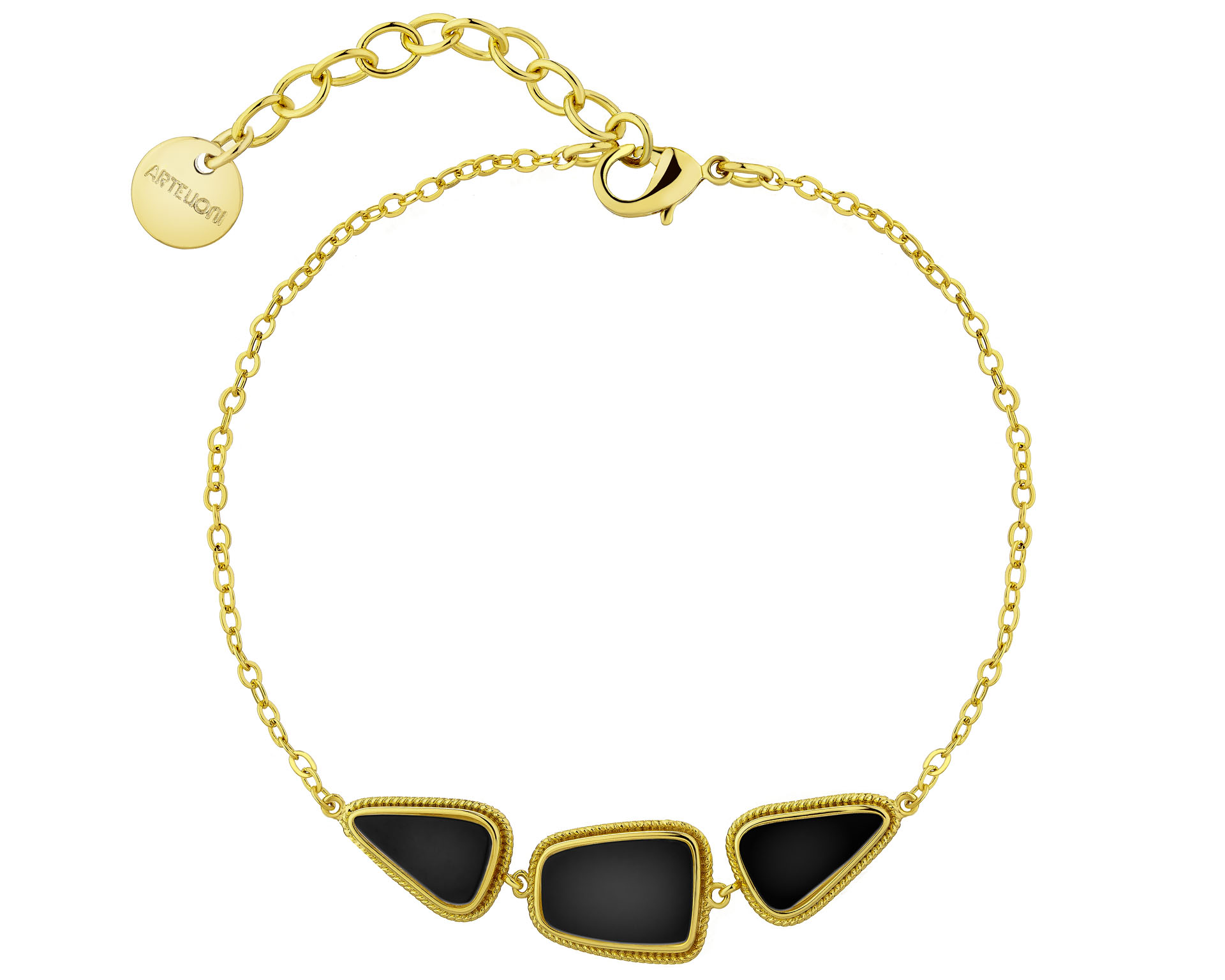 Bransoletka z mosiądzu pozłacana z agatem i szklanymi detalami