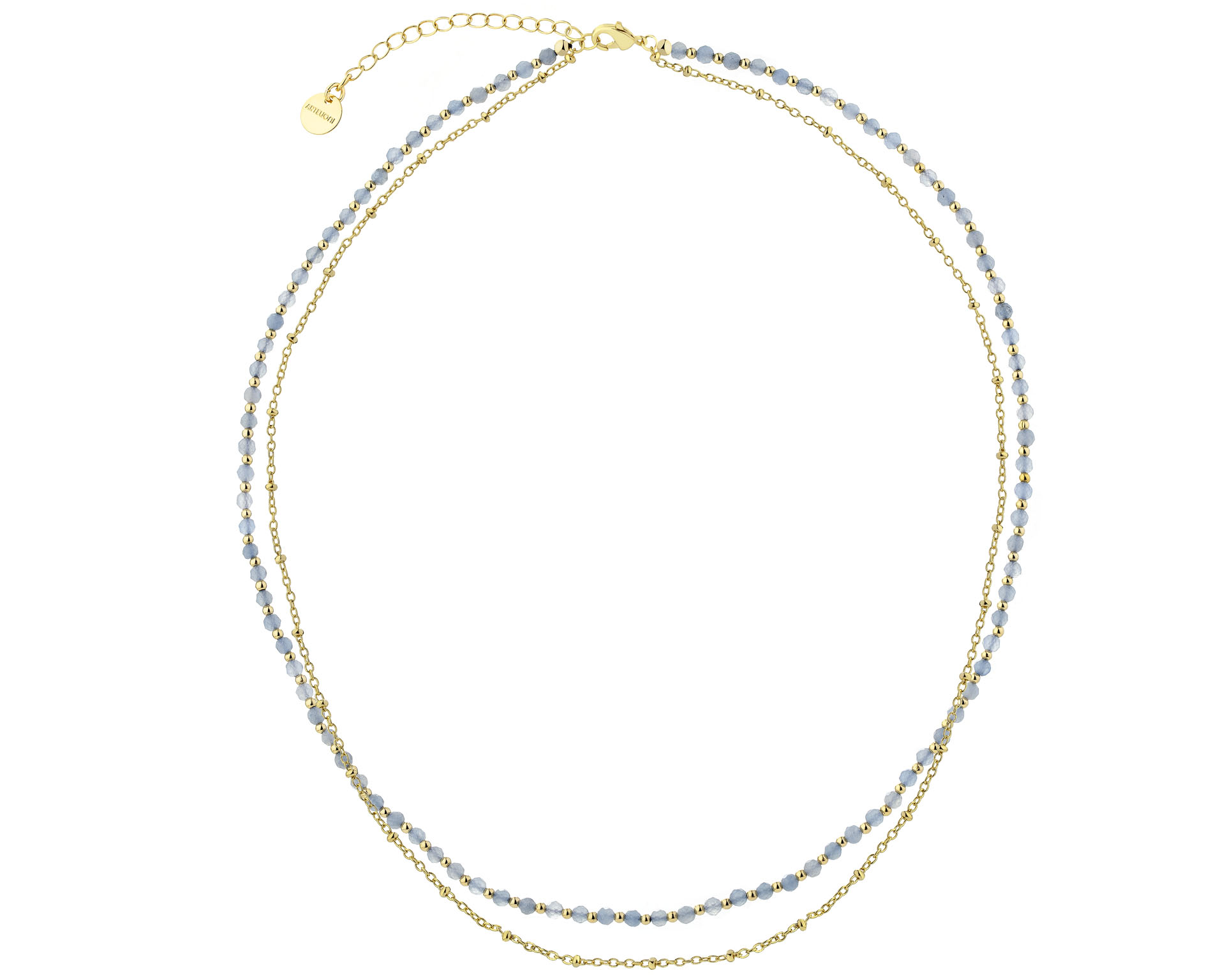 Naszyjnik z mosiądzu pozłacany z agatem i szklanymi detalami - rozeta