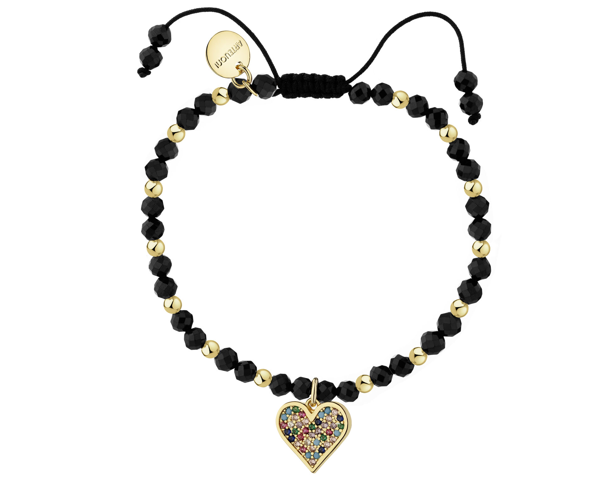 BRANSOLETKA Z MOSIĄDZU POZŁACANA Z CYRKONIAMI I SPINELAMI - SERCE